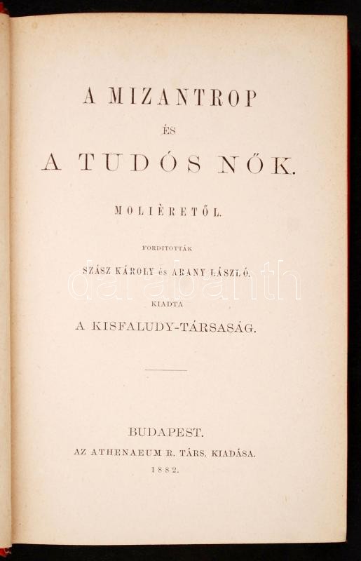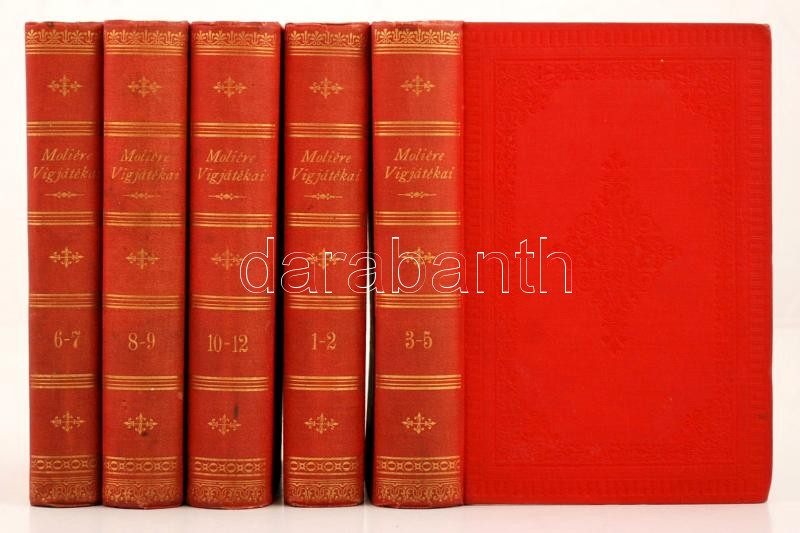 Moliére Vígjátékai. I-X. 5 kötetben. Budapest, 1881, Athenaeum. Aranyo... https://www.darabanth.com/de/258-Fernauktion/258.0/Bucher/Bucher-Sonstige-Raritaten~39/Moliere-Vigjatekai-I-X-5-kotetben-Budapest-1881-Athenaeum-Aranyozott-kiadoi-egeszvaszo~II1267602