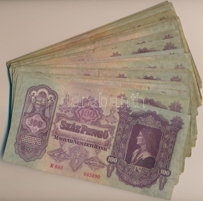 1930. 100P (50x) T:vegyes https://www.darabanth.com/de/258-Fernauktion/258.0/Numismatik/Ungarische-Banknoten~400007/1930-100P-50x-Tvegyes~II1267083