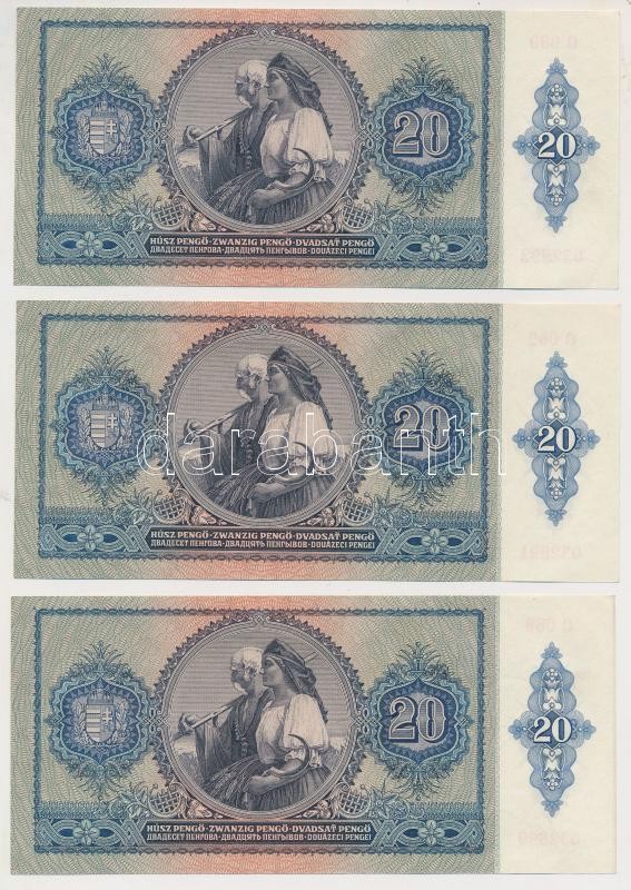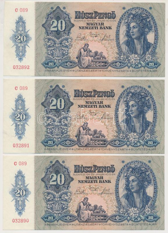 1941. 20P (3x) sorszámkövetők T:I https://www.darabanth.com/de/258-Fernauktion/258.0/Numismatik/Ungarische-Banknoten~400007/1941-20P-3x-sorszamkovetok-TI~II1266336