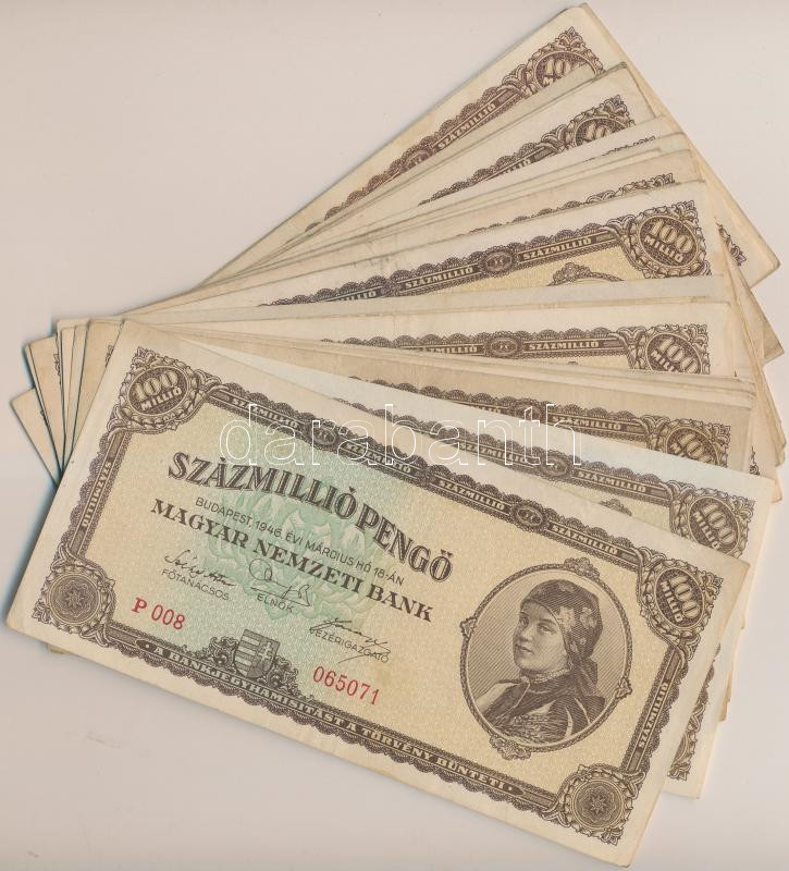 1946. 100.000.000P (30x) T:vegyes https://www.darabanth.com/de/258-Fernauktion/258.0/Numismatik/Ungarische-Banknoten~400007/1946-100000000P-30x-Tvegyes~II1266785