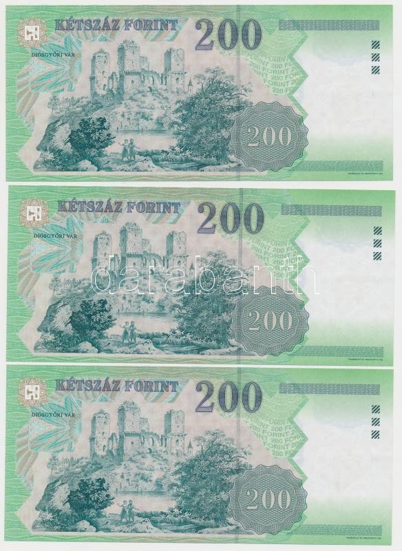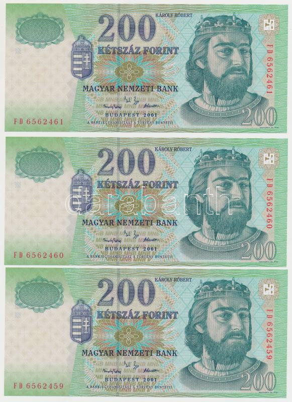 2001. 200Ft "FD" (3x) sorszámkövetők T:I https://www.darabanth.com/de/258-Fernauktion/258.0/Numismatik/Ungarische-Banknoten~400007/2001-200Ft-FD-3x-sorszamkovetok-TI~II1267893