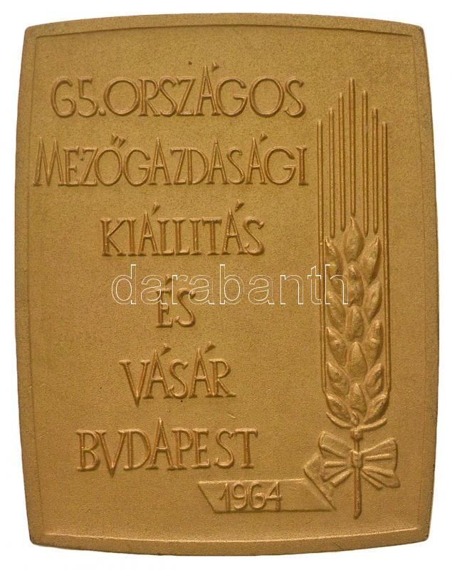 1964. "65. Országos Mezőgazdasági Kiállítás és Vásár Budapest / III. Díj" Br díj plakett (86x67,5mm) T:2