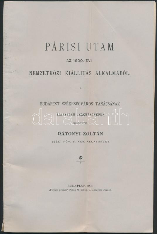 1901 Rátonyi Zoltán: Párisi utam az 1900. évi Nemzetközi Kiállítás alk... https://www.darabanth.com/de/259-Fernauktion/259.0/Andere-Sammelgebiete/Drucksachen~42/1901-Ratonyi-Zoltan-Parisi-utam-az-1900-evi-Nemzetkozi-Kiallitas-alkalmabol-Hajtas-nyo~II1276432