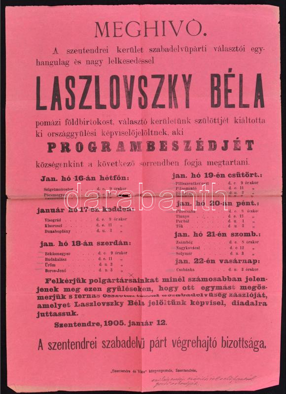 1905 Meghívó Laszlovszky Béla földbirtokos, a Szabadelvű Párt képvisel... https://www.darabanth.com/de/259-Fernauktion/259.0/Andere-Sammelgebiete/Drucksachen~42/1905-Meghivo-Laszlovszky-Bela-foldbirtokos-a-Szabadelvu-Part-kepviselojeloltjenek-program~II1278280