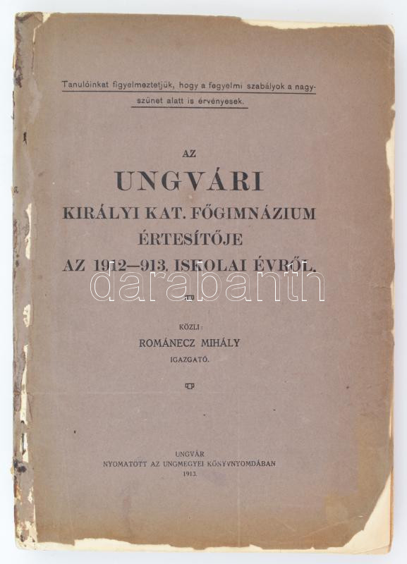 1913 Az Ungvári Királyi Kat. főgimnázium értesítője az 1912-913. iskol... https://www.darabanth.com/de/259-Fernauktion/259.0/Andere-Sammelgebiete/Drucksachen~42/1913-Az-Ungvari-Kiralyi-Kat-fogimnazium-ertesitoje-az-1912-913-iskolai-evrol-Kiadoi-pap~II1276172