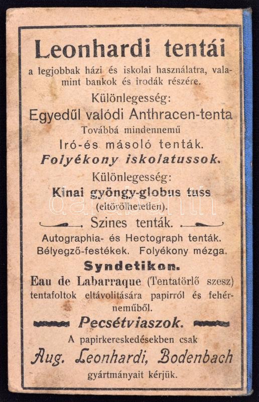 cca 1910 Leonhardi tentái szecessziós, reklámos órarend füzet. Kitölte... https://www.darabanth.com/de/259-Fernauktion/259.0/Andere-Sammelgebiete/Drucksachen~42/cca-1910-Leonhardi-tentai-szecesszios-reklamos-orarend-fuzet-Kitoltetlen-8x11-cm~II1274099