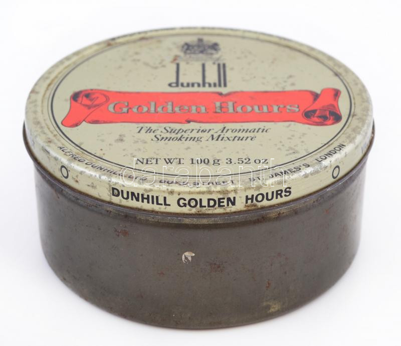Dunhill Golden Hours dohány fémdoboz majdnem teljes tartalommal, 10x5c... https://www.darabanth.com/de/259-Fernauktion/259.0/Andere-Sammelgebiete/Flohmarkt~10/Dunhill-Golden-Hours-dohany-femdoboz-majdnem-teljes-tartalommal-10x5cm-Golden-Hours-Dunhill-toba~II1278482