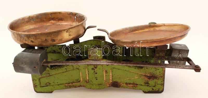 Régi kopott konyhamérleg, réz serpenyővel, 42×19 cm https://www.darabanth.com/de/259-Fernauktion/259.0/Andere-Sammelgebiete/Flohmarkt~10/Regi-kopott-konyhamerleg-rez-serpenyovel--42C39719-cm~II1278344