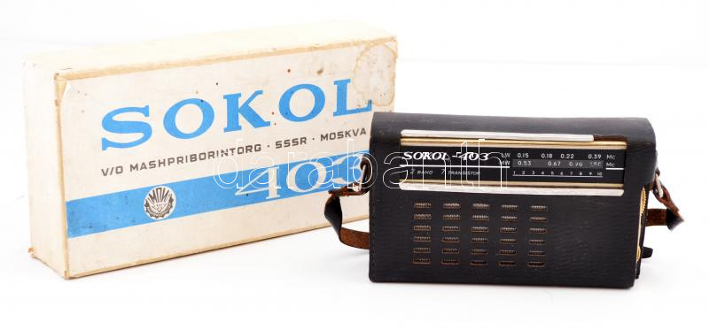 Retró Sokol 403 rádió, eredeti dobozában, leírással, működik, 10×19 cm https://www.darabanth.com/de/259-Fernauktion/259.0/Andere-Sammelgebiete/Flohmarkt~10/Retro-Sokol-403-radio-eredeti-dobozaban-leirassal-mukodik-10C39719-cm~II1278257