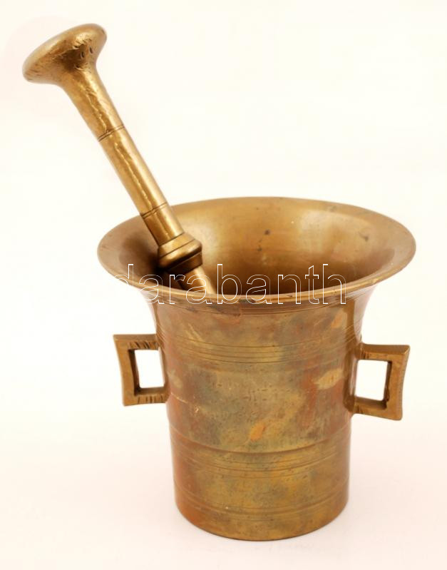 Réz mozsár törővel, m: 15 cm, d: 17 cm, h: 27 cm https://www.darabanth.com/de/259-Fernauktion/259.0/Andere-Sammelgebiete/Flohmarkt~10/Rez-mozsar-torovel-m-15-cm-d-17-cm-h-27-cm~II1276898