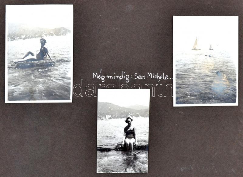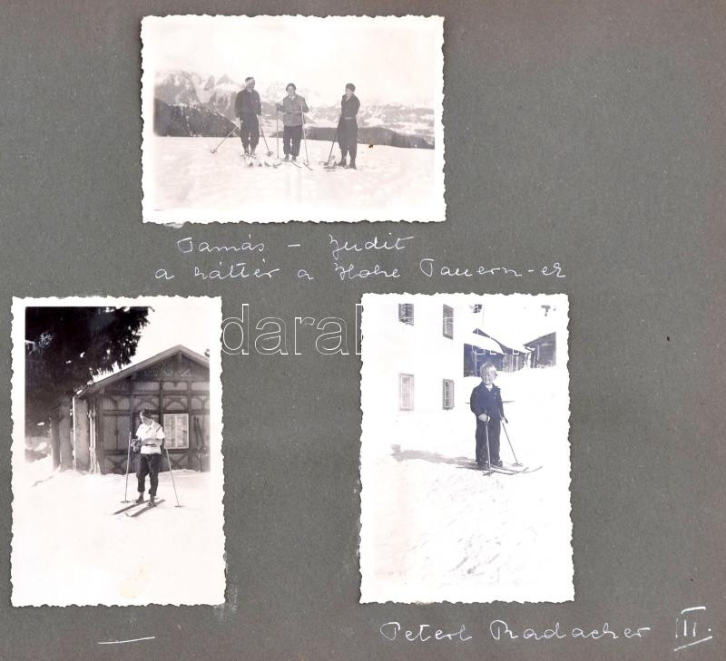 cca 1930 Nagyrészt ausztriai síelős képeket tartalmazó utazásokról készített fényképalbum kb 80 db feliratozott kép. / Austria photos of a travel nearly 80 photos with description in album