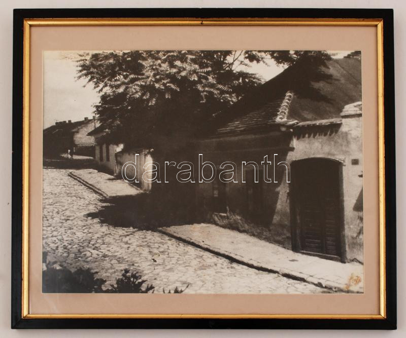 Beschreibung: cca 1930 Tabáni utcarészlet fotó üvegezett keretben. 44x38 cm