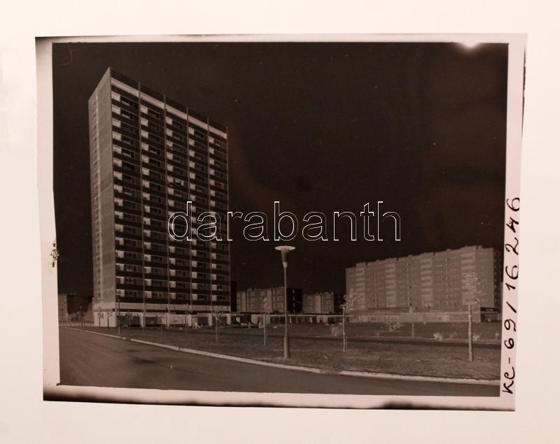 cca 1969-1970 Budapesti épületek fotói, feliratozott negatívok, professzionális minőségben, szabadon felhasználható, jogdíjmentes, 11 db negatív, 6x6 cm és 6x7 cm