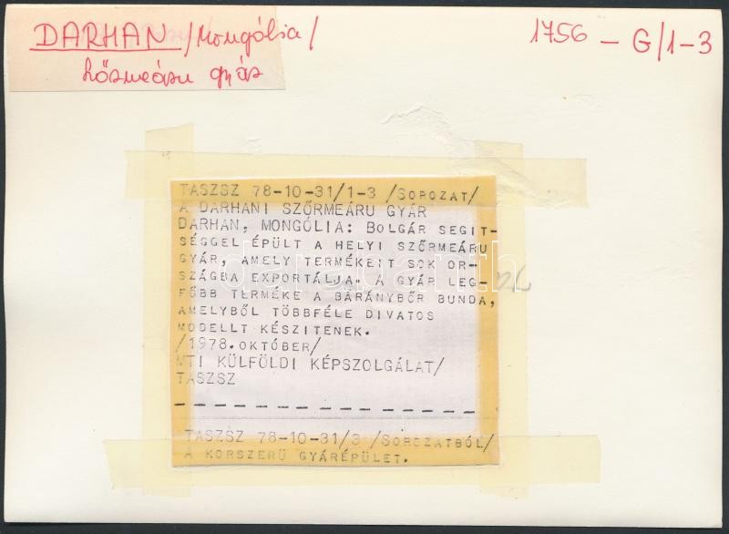 cca 1970 Mongolia ipari üzemek 5 db feliratozott MTI sajtófotó / Mongo... https://www.darabanth.com/de/259-Fernauktion/259.0/Andere-Sammelgebiete/Foto~27/cca-1970-Mongolia-ipari-uzemek-5-db-feliratozott-MTI-sajtofoto-Mongolia-Press-photos-16x12-cm~II1261239