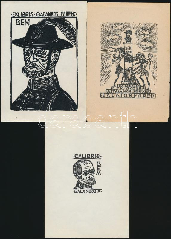Beschreibung: Bem Józsefet ábrázoló 3 klf ex libris. / Bem Ex libris.