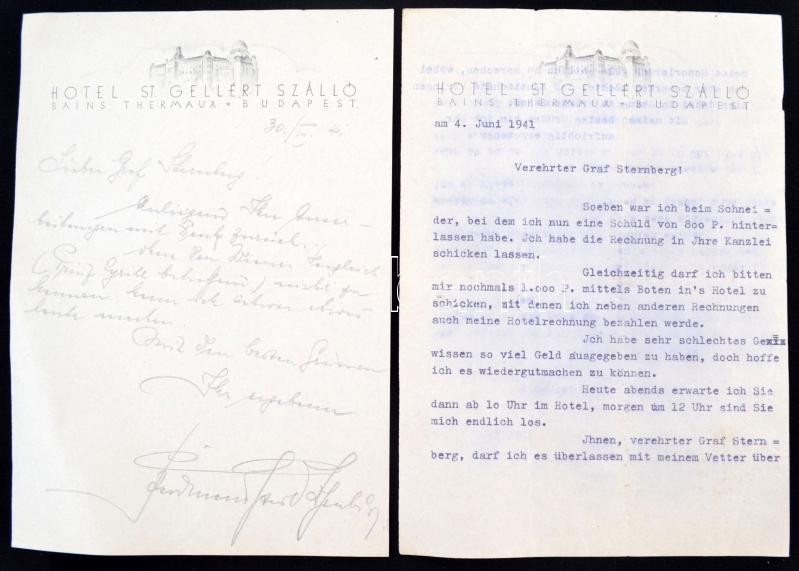 Beschreibung: 1930- 1941 Szász-Coburgi Ferdinand Karl herceg 2 db saját kézzel írt levele Sternberg grófnak