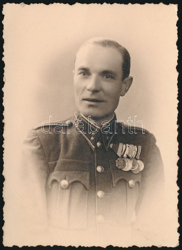 Beschreibung: cca 1938-1945 Ismeretlen katona fotója, egyenruháján sok kitüntetéssel, 9x6 cm