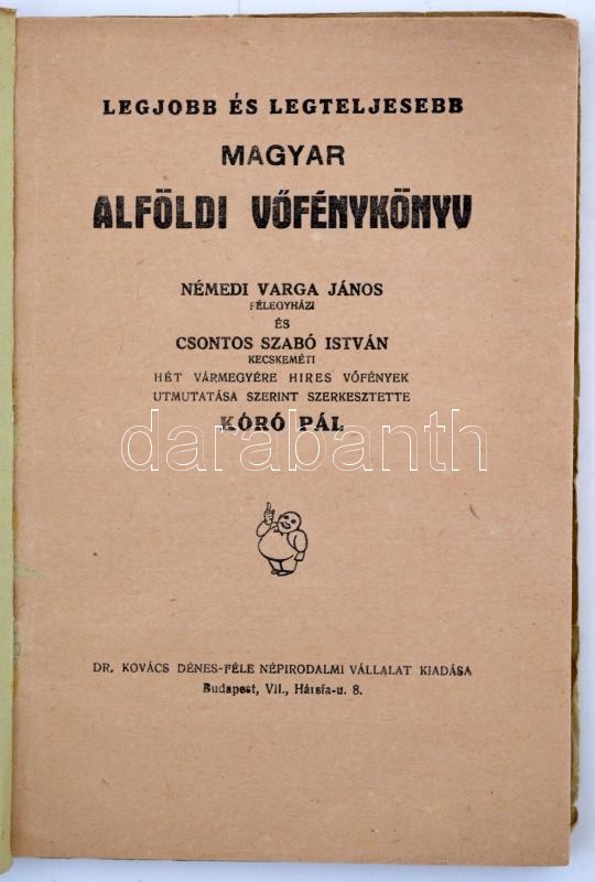 Kóró Pál(szerk.): Legjobb és legteljesebb magyar alföldi vőfélykönyv. Bp., 1943, Dr. Kovács Dénes-féle Népirodalmi Vállalat. Kiadói papírkötés, jó állapotban.