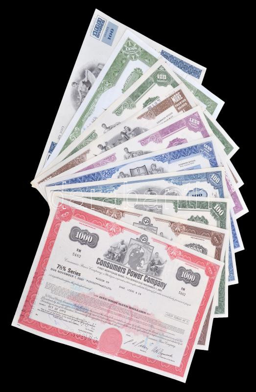 Amerikai Egyesült Államok 1965-1970. 10db klf részvény perforációval, bélyegzésekkel, lyukasztással érvénytelenítve T:I-III