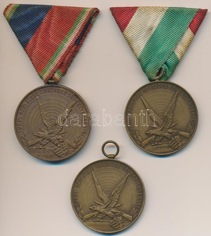1938. "Turul Szövetség Országos Lövészversenyei" 3db Br díjé... https://www.darabanth.com/de/259-Fernauktion/259.0/Numismatik/Faleristik-Auszeichnungen-Medaillen-Ordnen~100018/1938-Turul-Szovetseg-Orszagos-Loveszversenyei-3db-Br-dijerem-ketto-mellszalaggal-Szign~II1248534