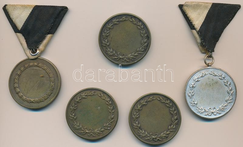 Beschreibung: ~1930. 5db-os lövész díjérem, kettő mellszalaggal, mind "GÁL" gyártói jelzéssel (41mm) T:2
