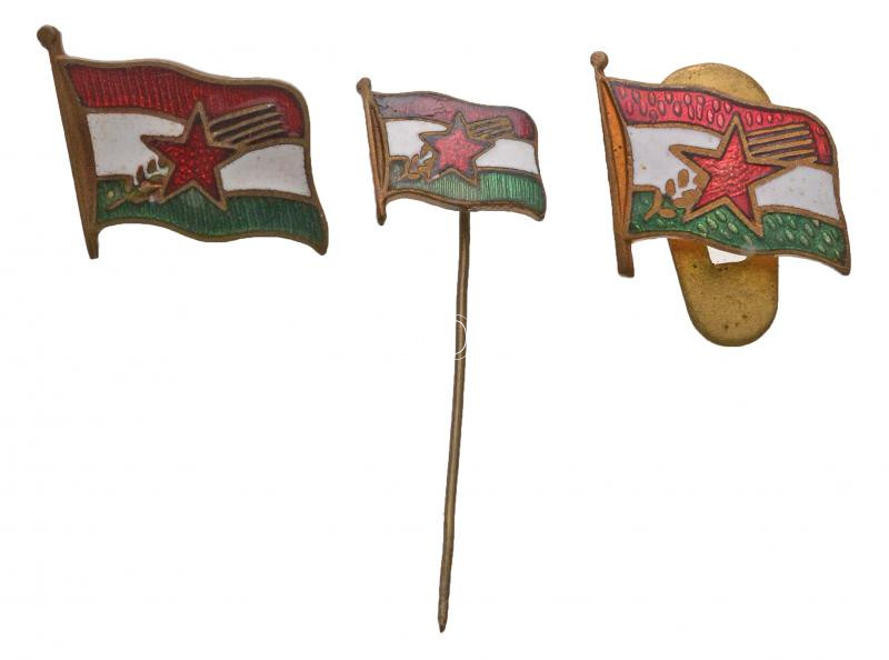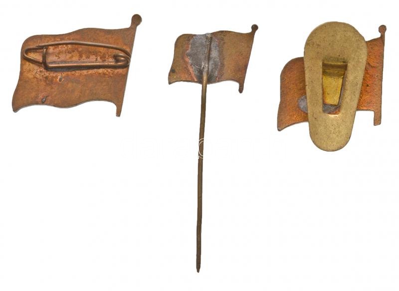 ~1950. 3db zománcozott zászló jelvény T:2 https://www.darabanth.com/de/259-Fernauktion/259.0/Numismatik/Faleristik-Auszeichnungen-Medaillen-Ordnen~100018/7E1950-3db-zomancozott-zaszlo-jelveny-T2~II1279034