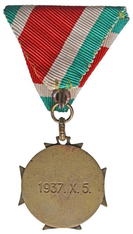 Hungary 1937. "Officers' Medal for Long Service" gold plated, enamelled bronze decoration with ribbon, worn gilding C:VF enamel error