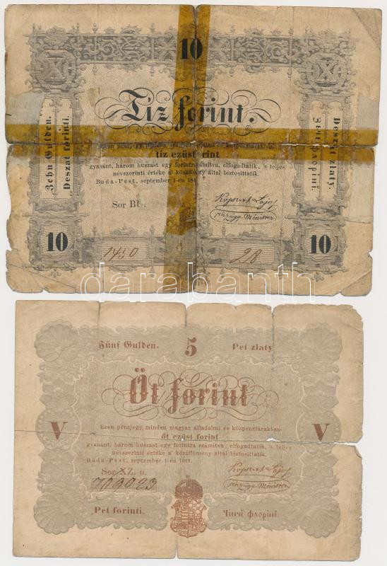 1848. 5Ft (2x) vörösesbarna és barna + 10Ft "Kossuth bankó" ... https://www.darabanth.com/de/259-Fernauktion/259.0/Numismatik/Ungarische-Banknoten~100008/1848-5Ft-2x-vorosesbarna-es-barna-plus-10Ft-Kossuth-banko-TIII-IV-10Ft-ragasztott~II1259628