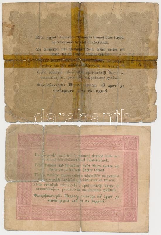 Beschreibung: 1848. 5Ft (2x) vörösesbarna és barna + 10Ft "Kossuth bankó" T:III-,IV 10Ft ragasztott