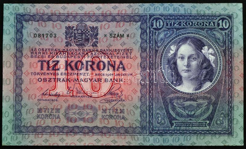 Hungary 1904. 10 Korona C:AU tiny corner wears, slight bend on the top right corner