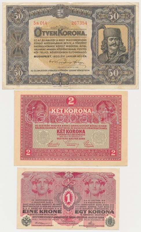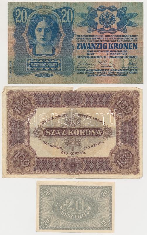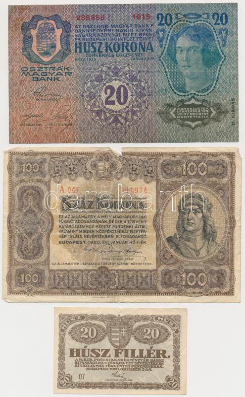 1913. 20K II. kiadás + 1916. 1K + 1917. 2K + 1920. 20f + 50K + 100K T:... https://www.darabanth.com/de/259-Fernauktion/259.0/Numismatik/Ungarische-Banknoten~100008/1913-20K-II-kiadas-plus-1916-1K-plus-1917-2K-plus-1920-20f-plus-50K-plus-100K-Tvegyes~II1248247