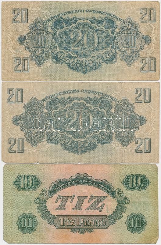 1944. 1P-100P (10x) "A Vörös Hadsereg Parancsnoksága" T:vegy... https://www.darabanth.com/de/259-Fernauktion/259.0/Numismatik/Ungarische-Banknoten~100008/1944-1P-100P-10x-A-Voros-Hadsereg-Parancsnoksaga-Tvegyes~II1273768