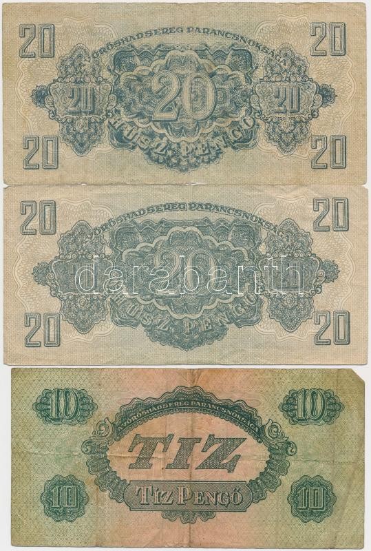 1944. 1P-100P (10x) "A Vörös Hadsereg Parancsnoksága" T:vegy... https://www.darabanth.com/de/259-Fernauktion/259.0/Numismatik/Ungarische-Banknoten~100008/1944-1P-100P-10x-A-Voros-Hadsereg-Parancsnoksaga-Tvegyes~II1273774