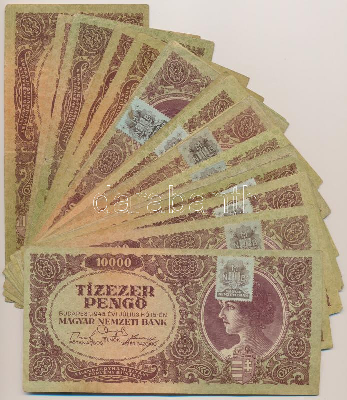 Beschreibung: 1945. 10.000P (30x) mind "MNB" bélyeggel T:vegyes