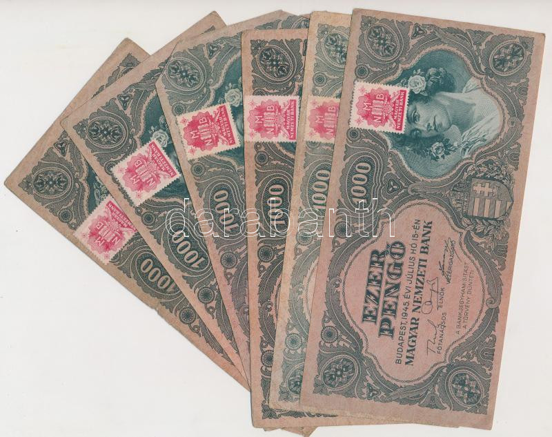 Beschreibung: 1945. 1000P (30x) mind piros "MNB" bélyeggel T:vegyes