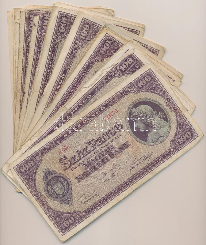 1945. 100P (30x) T:vegyes https://www.darabanth.com/de/259-Fernauktion/259.0/Numismatik/Ungarische-Banknoten~100008/1945-100P-30x-Tvegyes~II1272844