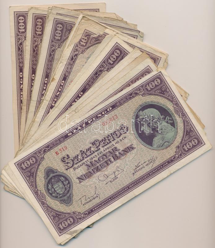 1945. 100P (30x) T:vegyes https://www.darabanth.com/de/259-Fernauktion/259.0/Numismatik/Ungarische-Banknoten~100008/1945-100P-30x-Tvegyes~II1272911