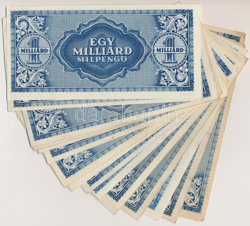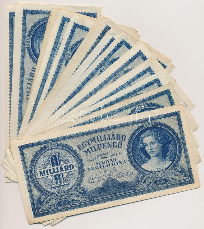 1946. 1.000.000.000MP (20x) T:vegyes https://www.darabanth.com/de/259-Fernauktion/259.0/Numismatik/Ungarische-Banknoten~100008/1946-1000000000MP-20x-Tvegyes~II1272780