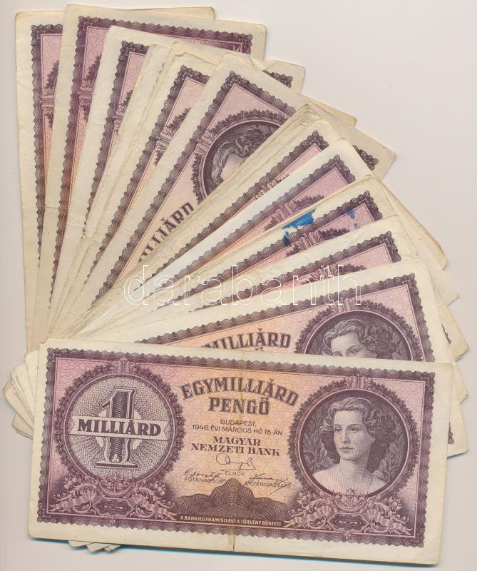 1946. 1.000.000.000P (30x) T:vegyes https://www.darabanth.com/de/259-Fernauktion/259.0/Numismatik/Ungarische-Banknoten~100008/1946-1000000000P-30x-Tvegyes~II1272797