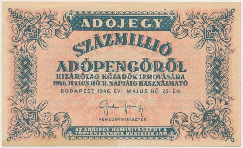 1946. 100.000.000AP T:II- https://www.darabanth.com/de/259-Fernauktion/259.0/Numismatik/Ungarische-Banknoten~100008/1946-100000000AP-TII-~II1247877