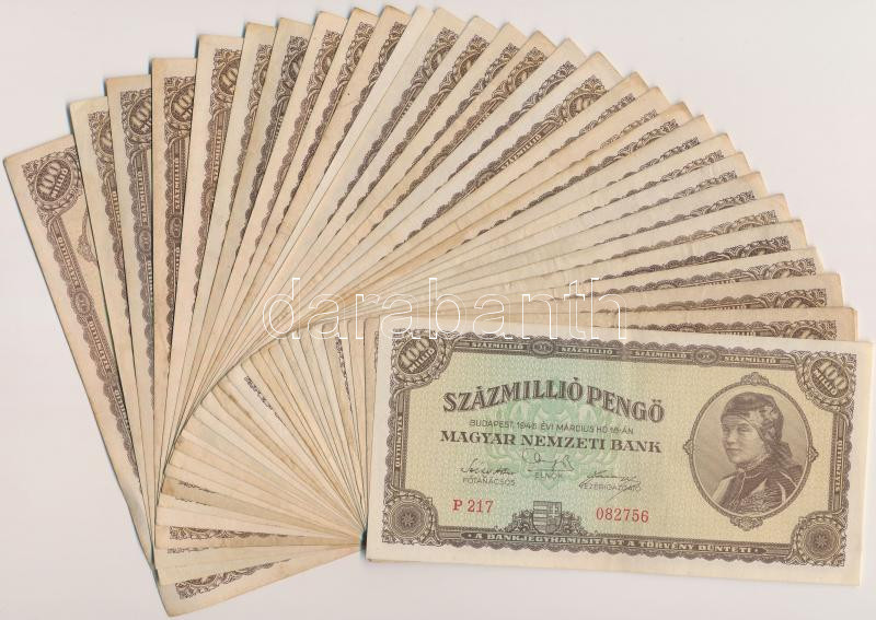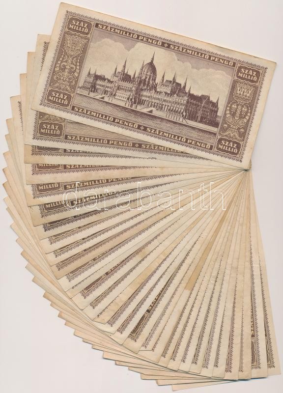 1946. 100.000.000P (30x) T:vegyes https://www.darabanth.com/de/259-Fernauktion/259.0/Numismatik/Ungarische-Banknoten~100008/1946-100000000P-30x-Tvegyes~II1278906