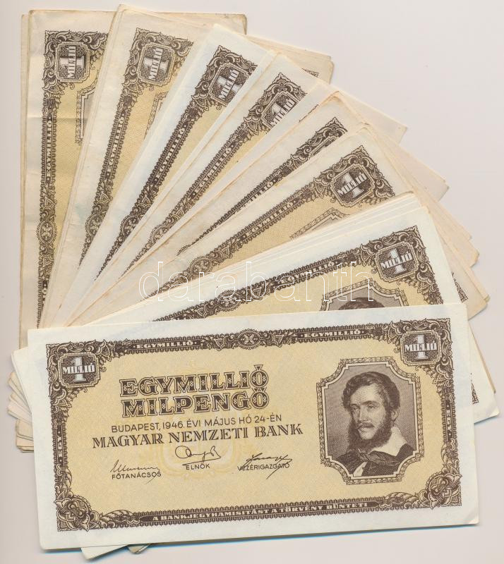 1946. 1.000.000MP (30x) T:vegyes https://www.darabanth.com/de/259-Fernauktion/259.0/Numismatik/Ungarische-Banknoten~100008/1946-1000000MP-30x-Tvegyes~II1272823