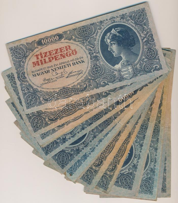 1946. 10.000MP (30x) T:vegyes https://www.darabanth.com/de/259-Fernauktion/259.0/Numismatik/Ungarische-Banknoten~100008/1946-10000MP-30x-Tvegyes~II1272810