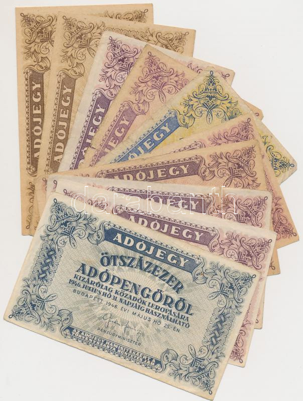 1946. 10db-os vegyes magyar adópengő bankjegy tétel T:vegyes https://www.darabanth.com/de/259-Fernauktion/259.0/Numismatik/Ungarische-Banknoten~100008/1946-10db-os-vegyes-magyar-adopengo-bankjegy-tetel-Tvegyes~II1247386