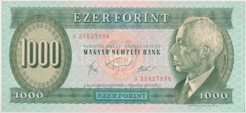 1983. március 25. 1000Ft "A" T:I- https://www.darabanth.com/de/259-Fernauktion/259.0/Numismatik/Ungarische-Banknoten~100008/1983-marcius-25-1000Ft-A-TI-~II1278913