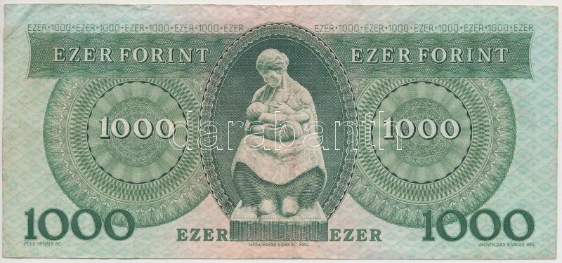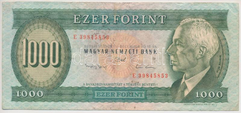 1993. 1000Ft "E" T:III,III- fo. https://www.darabanth.com/de/259-Fernauktion/259.0/Numismatik/Ungarische-Banknoten~100008/1993-1000Ft-E-TIII-III-fo~II1278025