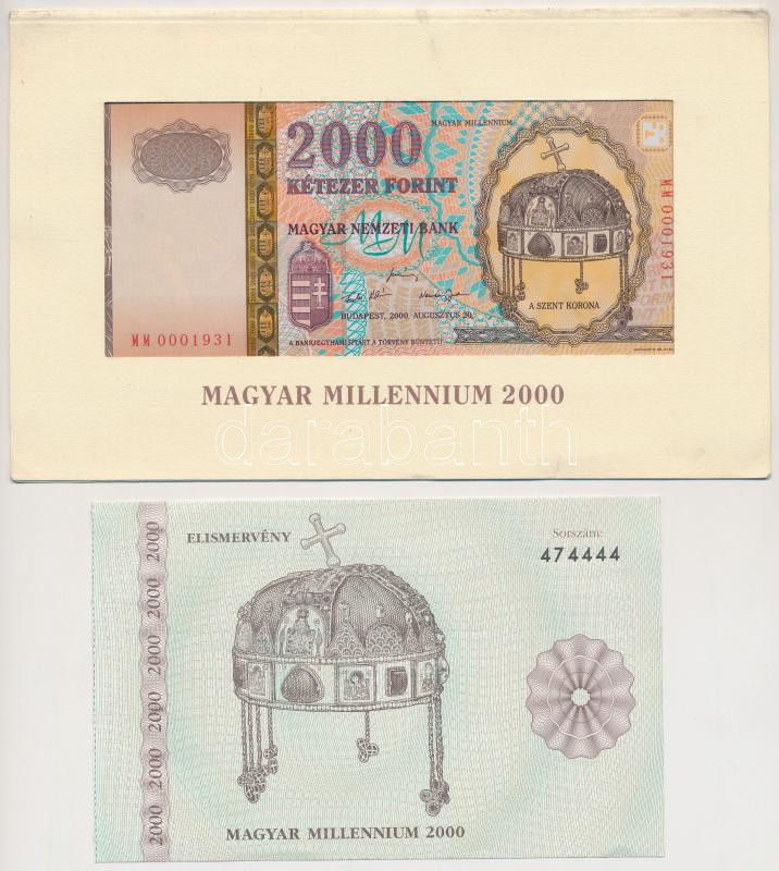 2000. 2000Ft "Millennium" díszcsomagolásban, védőfólia hiány... https://www.darabanth.com/de/259-Fernauktion/259.0/Numismatik/Ungarische-Banknoten~100008/2000-2000Ft-Millennium-diszcsomagolasban-vedofolia-hianyzik-atveteli-elismervennyel-T~II1277685