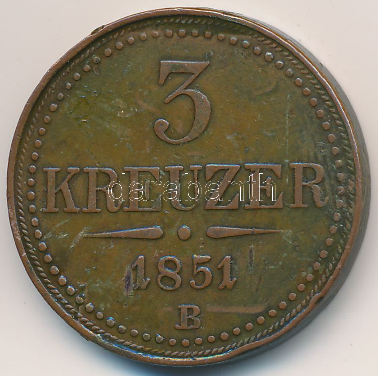 Beschreibung: 1851B 3kr Cu T:2- ph.