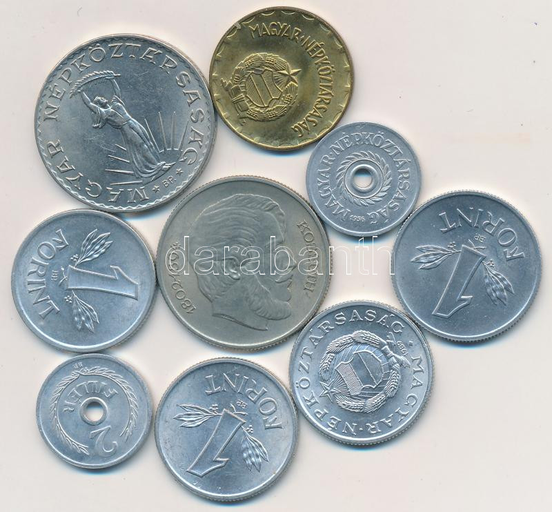 1955-1989. 2f Al (2xklf) + 1Ft (4x) + 2Ft + 5Ft + 10Ft T:1-,2 https://www.darabanth.com/de/259-Fernauktion/259.0/Numismatik/Ungarische-Munzen-und-Munzen-mit-ungarischem-Munzzeichen~100022/1955-1989-2f-Al-2xklf-plus-1Ft-4x-plus-2Ft-plus-5Ft-plus-10Ft-T1-2~II1273000