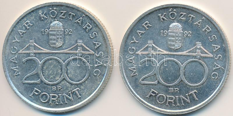 1992. 200Ft Ag "MNB" (2x) T:2 https://www.darabanth.com/de/259-Fernauktion/259.0/Numismatik/Ungarische-Munzen-und-Munzen-mit-ungarischem-Munzzeichen~100022/1992-200Ft-Ag-MNB-2x-T2~II1276624